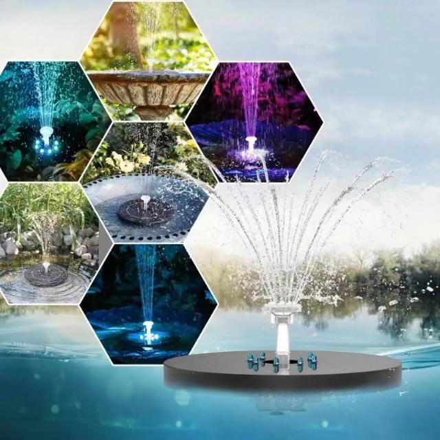 🍁娘小娘精選好貨🔥迷你蓄電池噴泉 LED七彩燈光太陽能噴泉 六種噴頭 太陽能噴水 充電式迷你噴泉 園林噴泉 池塘噴泉