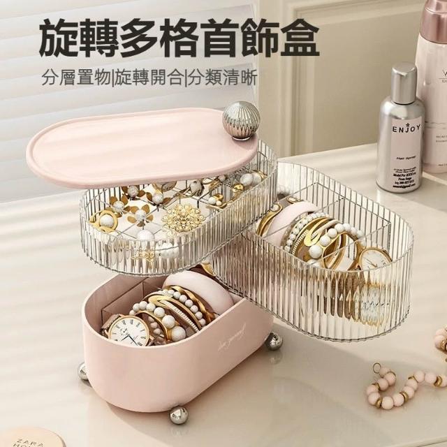 🍁娘小娘精選好貨✨旋轉首飾防塵收納盒 桌面收納盒 多層收納 北歐ins風 首飾收納 飾品收納 收納盒 桌上收納 收納