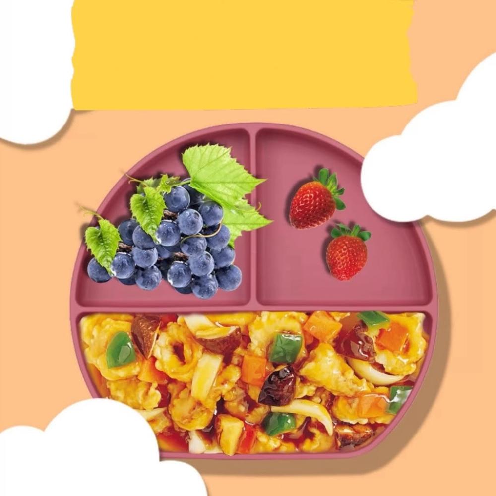 🍁娘小娘精選好貨⚡吸盤餐盤 食品級 莫蘭迪色 三格矽膠餐盤 矽膠餐盤 寶寶餐盤 兒童餐具 分格餐盤 分隔餐盤 寶寶餐盤