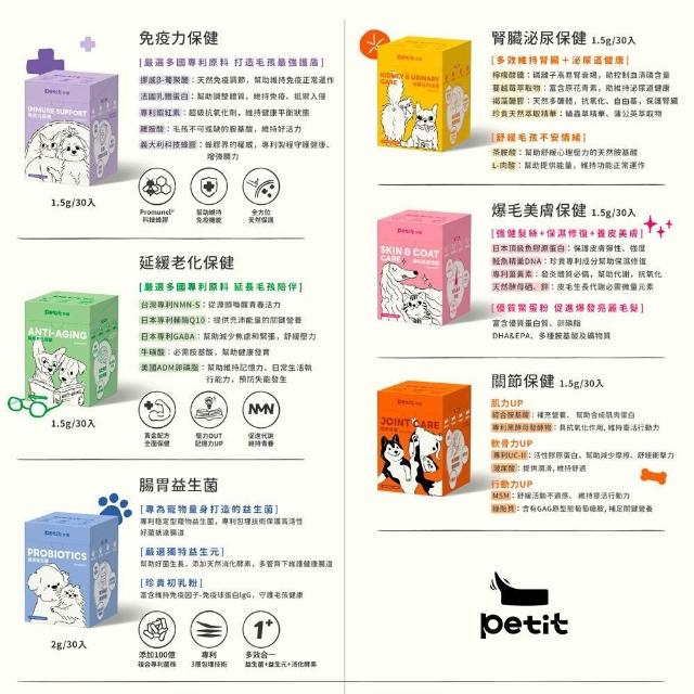 petit 沛蒂petit沛蒂 貓狗綜合保健品 試用粉包(關節保養; 毛髮美膚; 腸胃益生菌; 泌尿; 維持免疫)