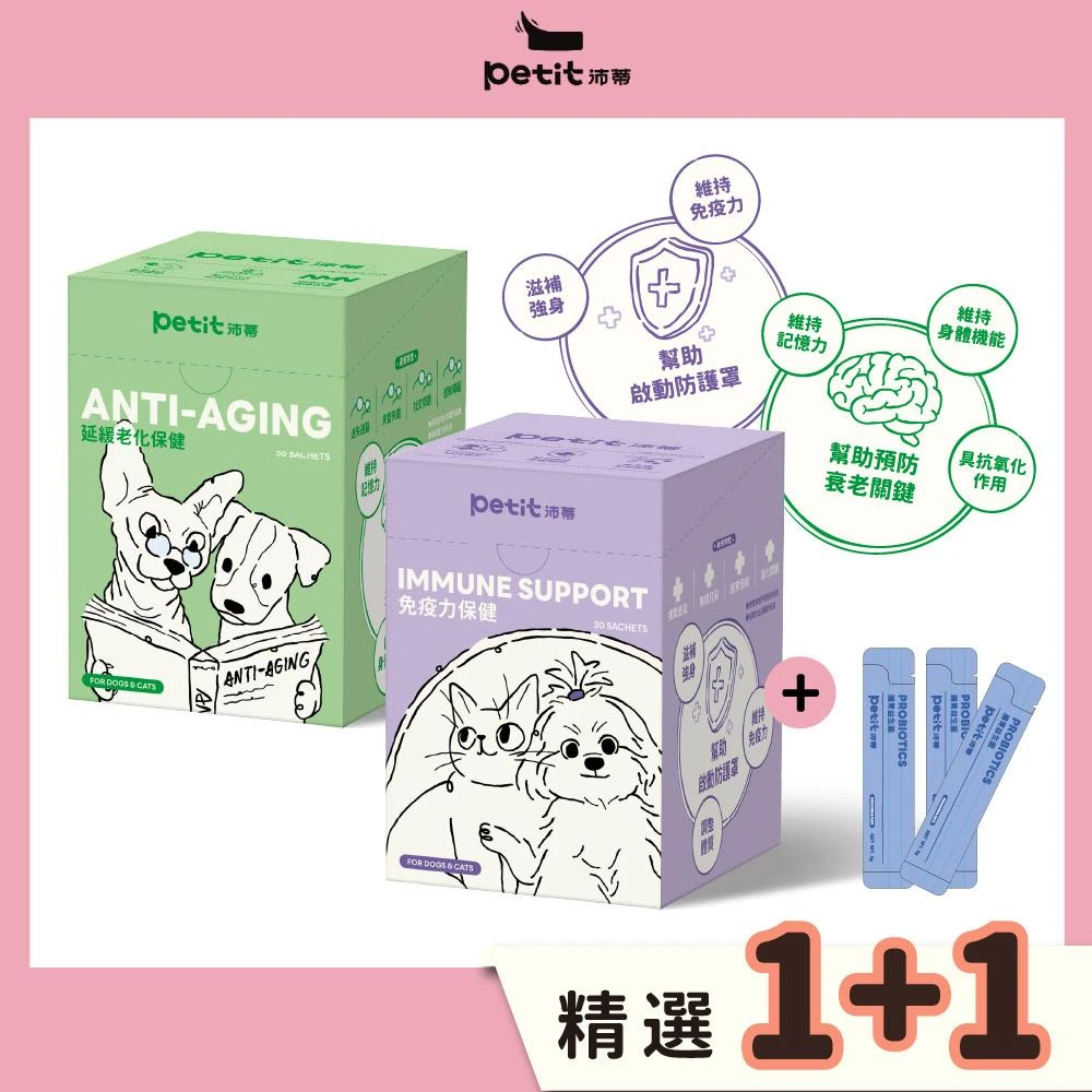 petit 沛蒂貓狗齡活時光守護組 免疫力*30+延緩老化*30+益生菌*3