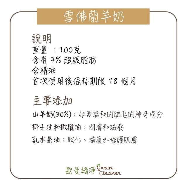 歐曼綠淨 🇫🇷法國有機認證手工冷製皂-雪佛蘭羊奶 100g(天然成份 全膚質 乾性肌膚)