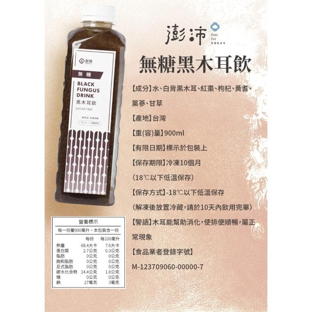 澎沛[黑木耳系列] 無糖 單瓶裝 900ml|不喜愛甜度的朋友,養生無糖系列最適合,喝了還會回甘。