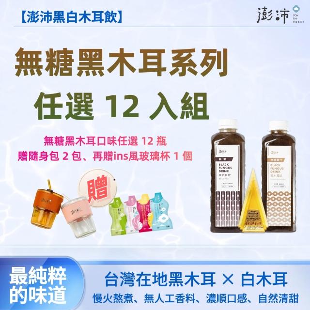 澎沛[無糖系列] 無糖黑木耳任選 12 瓶|贈隨身包2包,再贈ins風玻璃杯 1 個(口味、顏色隨機出貨)