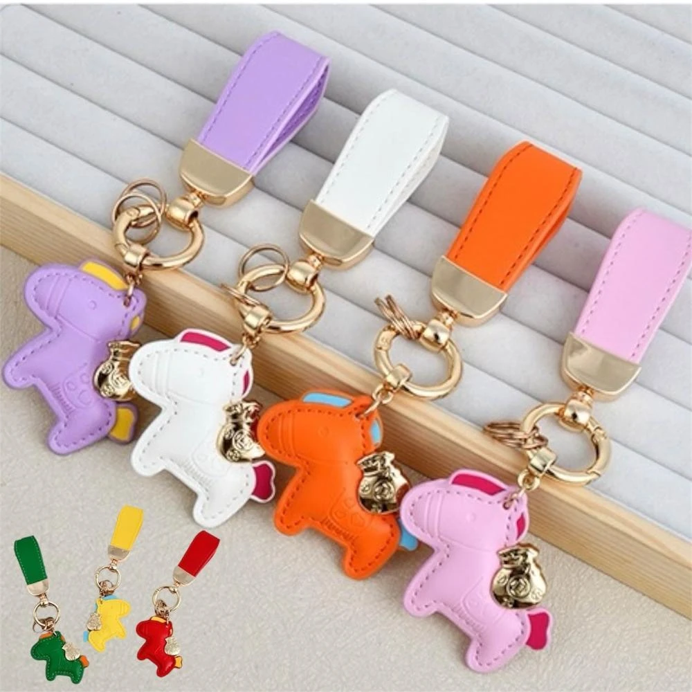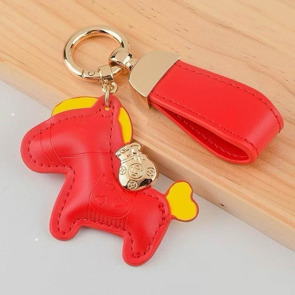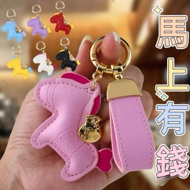 摩金-馬上有錢皮革鑰匙圈 招財鑰匙圈 汽車鑰匙扣 可愛小馬掛件 手工小馬包包掛飾 新年送禮 鑰匙扣 包包掛飾 吊飾