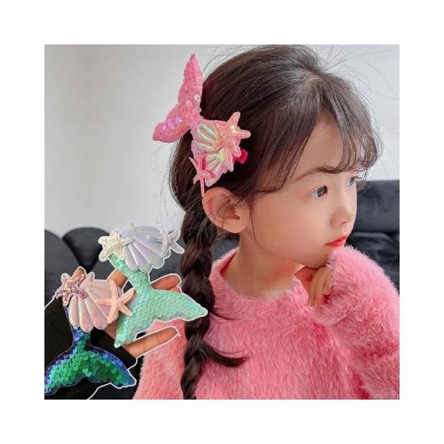 美人魚髮夾 閃亮魚尾側邊夾 兒童髮夾 貝殼海星鴨嘴夾 美人魚 海星 亮片髮夾 魚尾夾 髮夾 髮飾