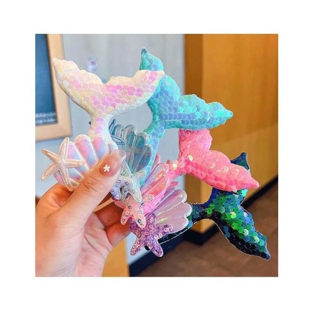 美人魚髮夾 閃亮魚尾側邊夾 兒童髮夾 貝殼海星鴨嘴夾 美人魚 海星 亮片髮夾 魚尾夾 髮夾 髮飾