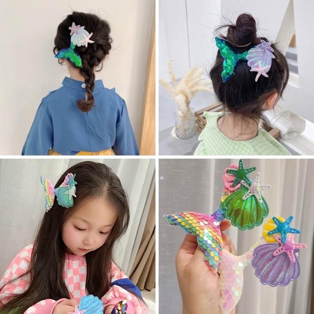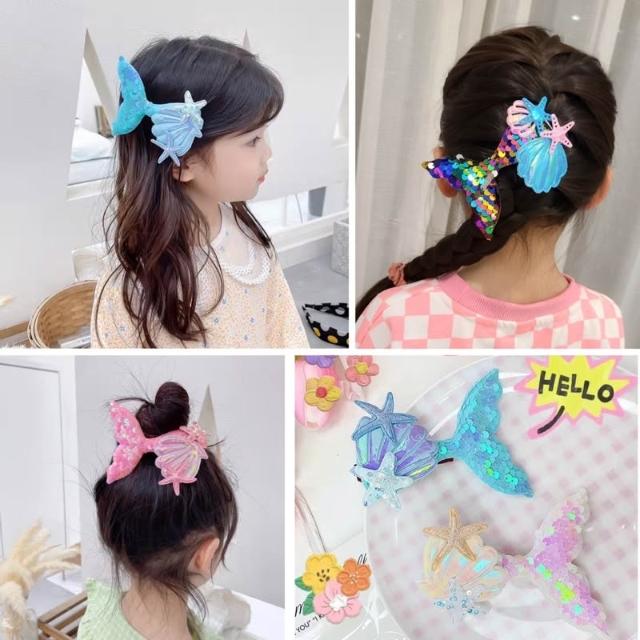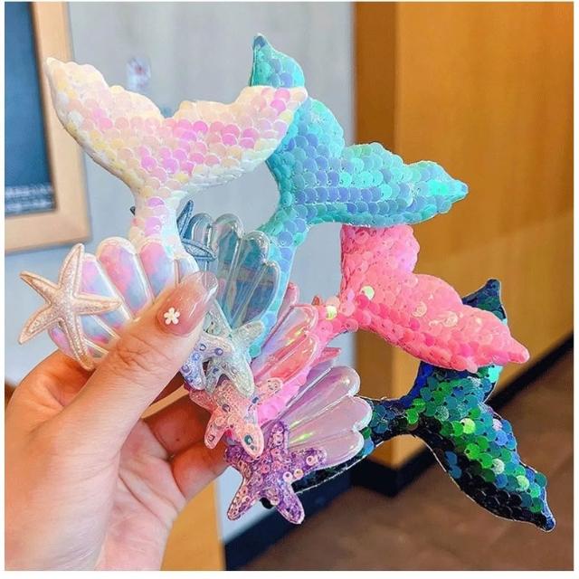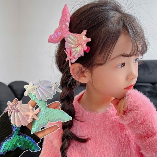 美人魚髮夾 閃亮魚尾側邊夾 兒童髮夾 貝殼海星鴨嘴夾 美人魚 海星 亮片髮夾 魚尾夾 髮夾 髮飾