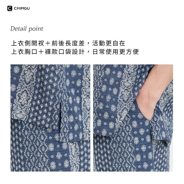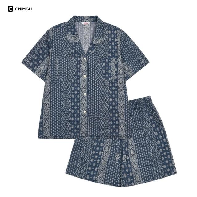 CHIMGU 寢谷家居ULLALA 法式純棉睡衣套裝 男款 圖騰文青印花 情侶睡衣 純棉睡衣 睡衣套裝 居家服 睡衣 Sendy