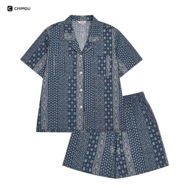 CHIMGU 寢谷家居ULLALA 法式純棉睡衣套裝 女款 圖騰文青印花 情侶睡衣 純棉睡衣 睡衣套裝 居家服 睡衣 Sendy