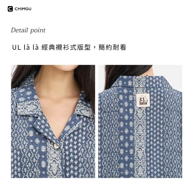 CHIMGU 寢谷家居ULLALA 法式純棉睡衣套裝 女款 圖騰文青印花 情侶睡衣 純棉睡衣 睡衣套裝 居家服 睡衣 Sendy