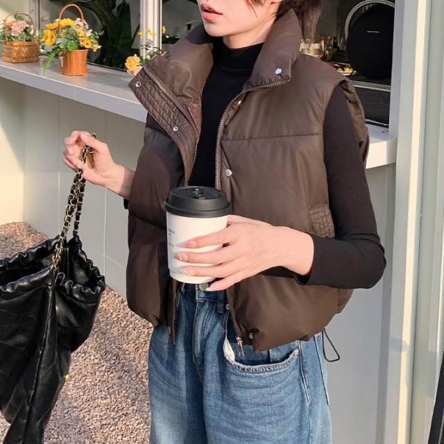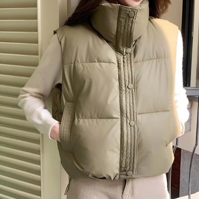 YAFFA_YAFFA韓國保暖立領短版羽絨背心外套 短版背心外套 鋪棉保暖羽絨背心 防潑水背心 立領鋪棉背心 麵包背心 厚背心外套
