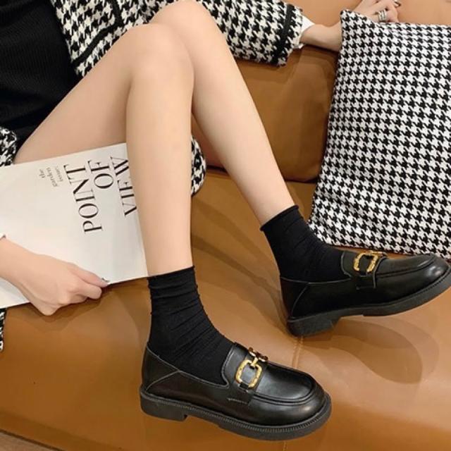 YAFFA_新品限時優惠!韓國氣質款英倫風厚底軟底樂福鞋 方頭樂福鞋 學生鞋皮鞋 霧面皮鞋 女皮鞋 樂福鞋 黑色鏈條樂福鞋 女黑皮鞋