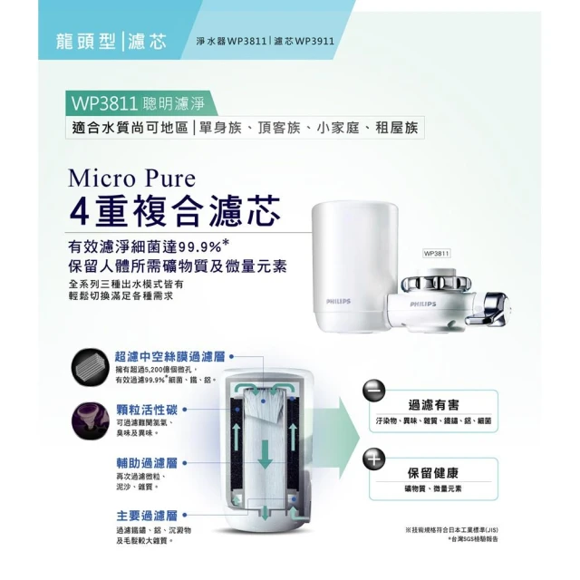 Philips 飛利浦PHILIPS飛利浦 極淨水龍頭型淨水器/濾水器 WP3811 另售WP3911/WP3922 日本製造