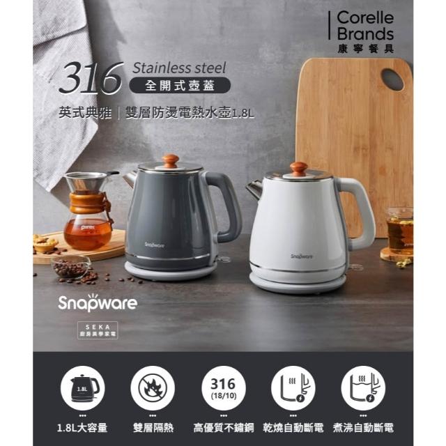 美國康寧 Snapware SEKA 英式典雅316不鏽鋼雙層防燙電熱水壺1.8L SN-EKK1800