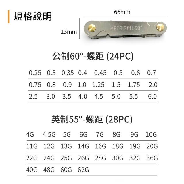 螺距規 PG52 蓋斯工具 螺文量規 螺紋牙規 螺紋樣板 螺紋規 公英制 塞尺 螺距計 螺紋計 羅紋 牙規 螺距尺