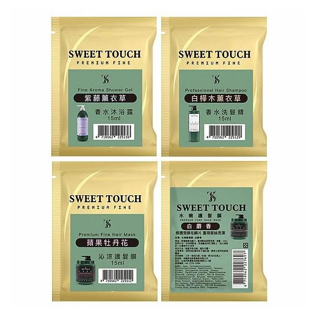 Sweet Touch 直覺SWEET TOUCH~直覺白樺木薰衣草香水洗髮精/紫藤薰衣草香水沐浴露/蘋果牡丹花沁涼/白麝香水嫩護髮膜(15ml)