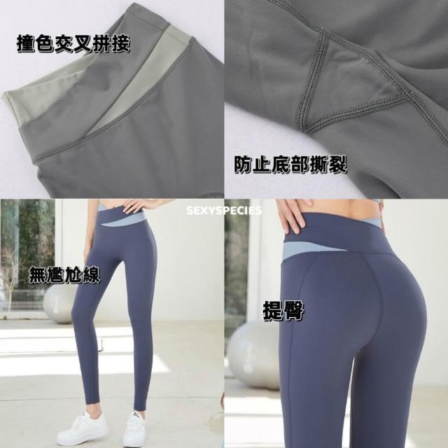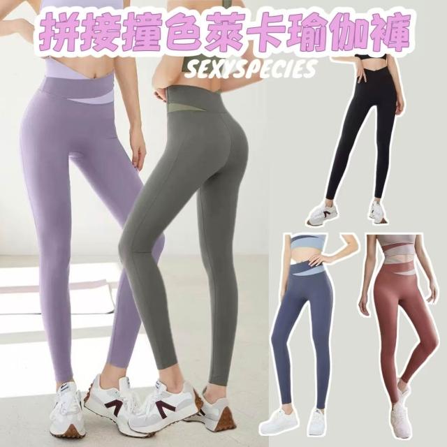 💥S精選💥拼色萊卡瑜珈褲 高彈無尷尬線設計 速乾跑步健身緊身褲 鯊魚褲 韻律褲 緊身長褲運動褲