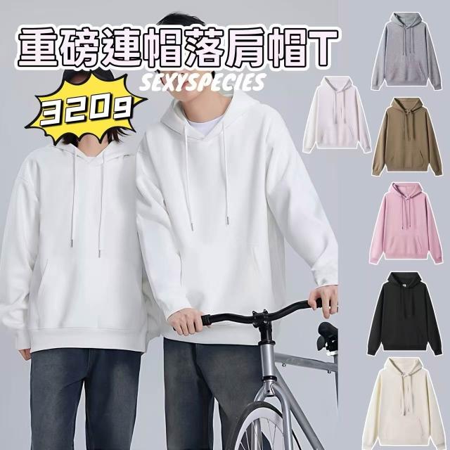 💥S精選💥320g重磅落肩帽T—螺紋袖口 男女同款 圓領長袖帽T 素色上衣 秋冬長袖 大學T