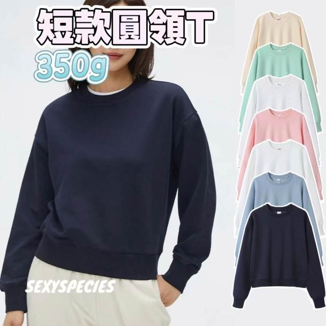 💥S精選💥350g短款圓領T 衛衣女 短款衛衣 長袖T 素色T 寬鬆上衣 圓領上衣 美式復古 長袖圓領T恤