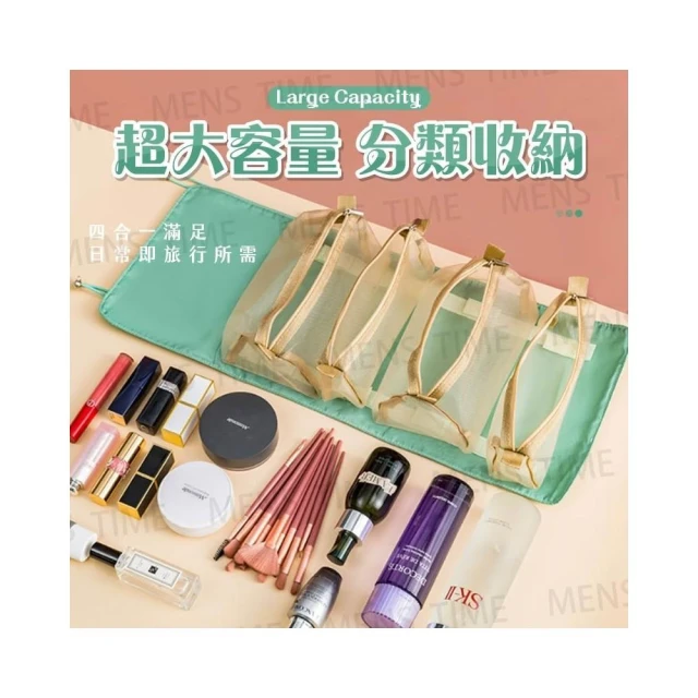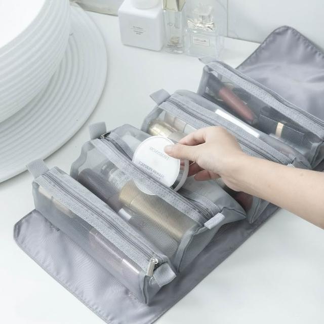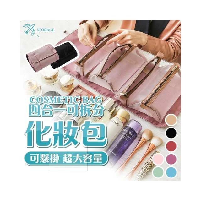 台灣現貨 ️劉亦菲同款化妝包 防潑水 四合一化妝包 化妝包 可拆式化妝包 魔鬼氈化妝包 化妝包大容量 女生化妝包