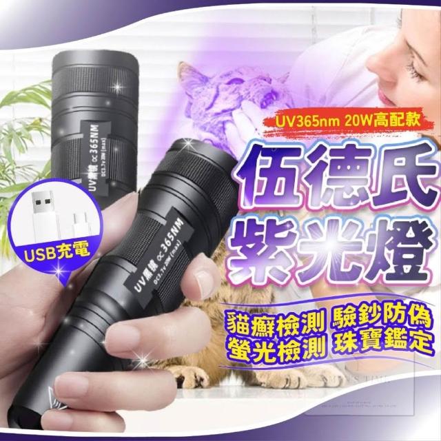 台灣現貨 ️驗鈔貓蘚檢測 20W高配充電款 伍德氏燈 紫外線燈 365nm 紫外線手電筒 20W 驗鈔燈 UV手電筒
