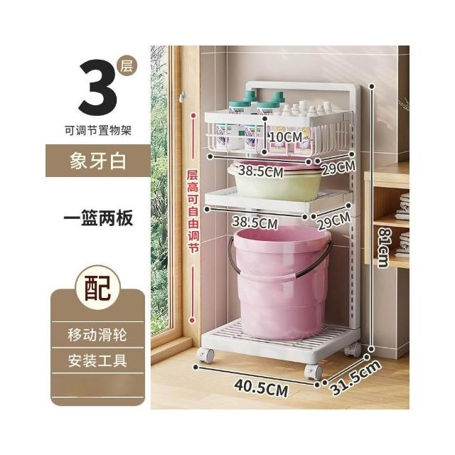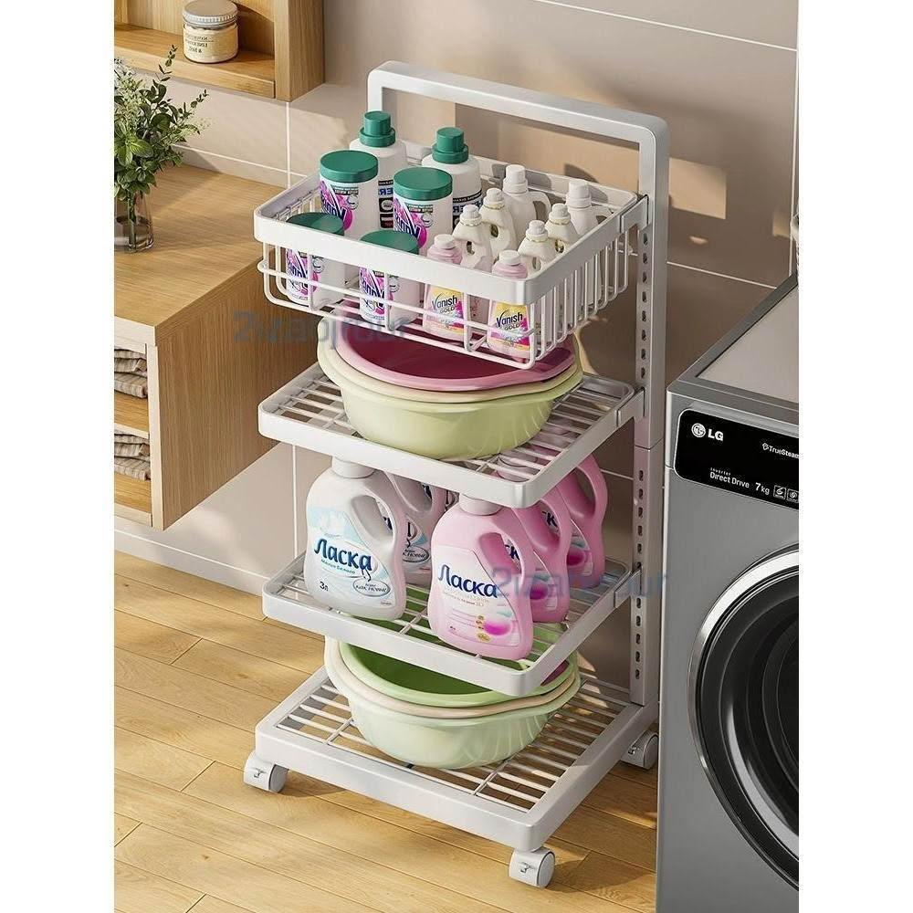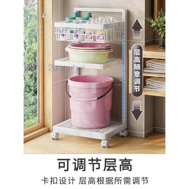 陽台臉盆置物架 衛生間收納架 洗衣機側邊落地置物架 多功能洗衣液收納 收納層架 可移動收納架子