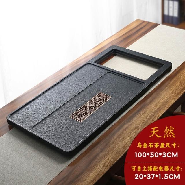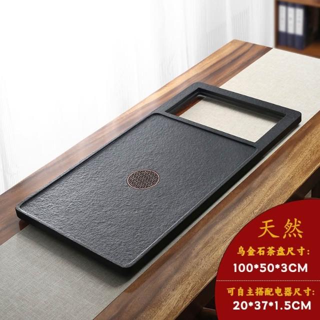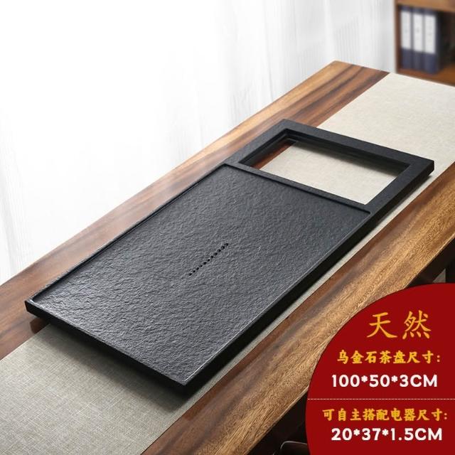 天然乌金石茶盘 嵌入式全自动烧水一体家用新款火烧石茶台 不带电器 小茶台 茶托盘 茶海 茶盘 茶具