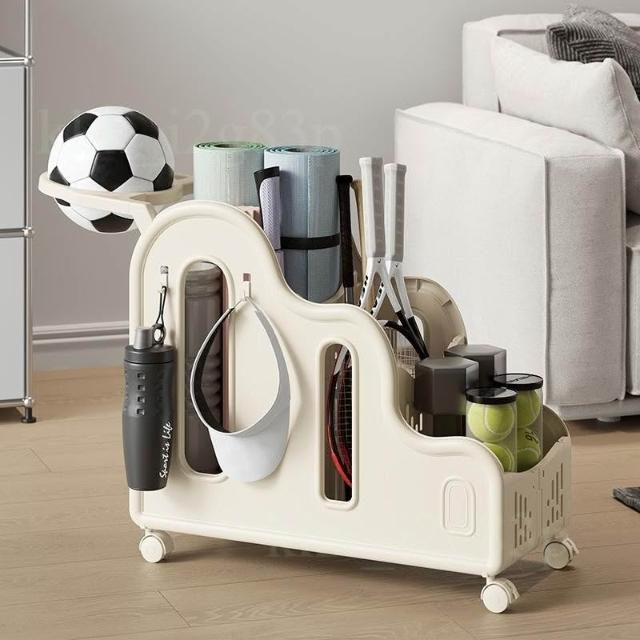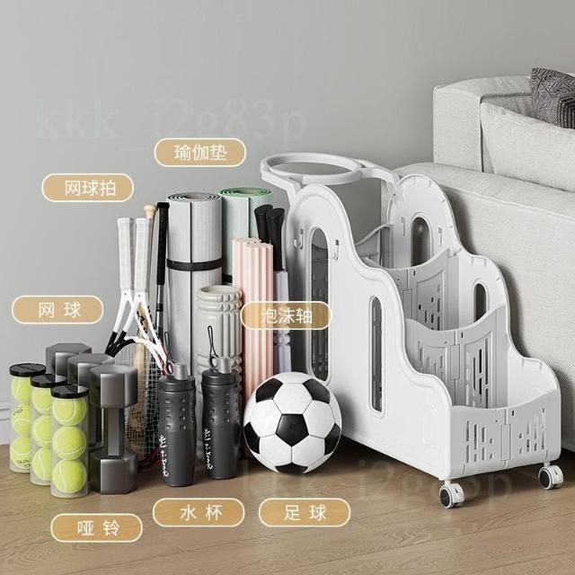 瑜伽墊收納筐 家用健身運動器材整理神器 籃球類體育用品折疊小推車 收納架 小推車 收納籃 可移動儲物