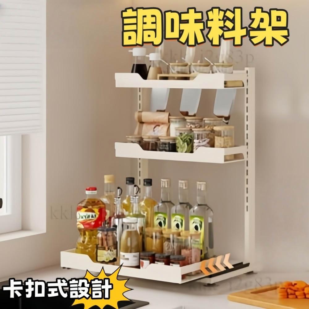 廚房置物架 調料架 調味料架 高度可調 抽拉 置物架 刀具架 調料收納架 廚房調料架 調味料罐組 調