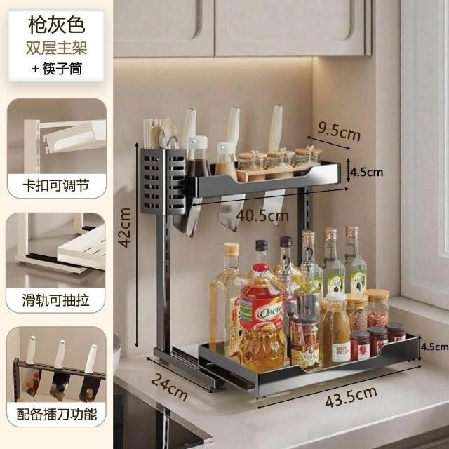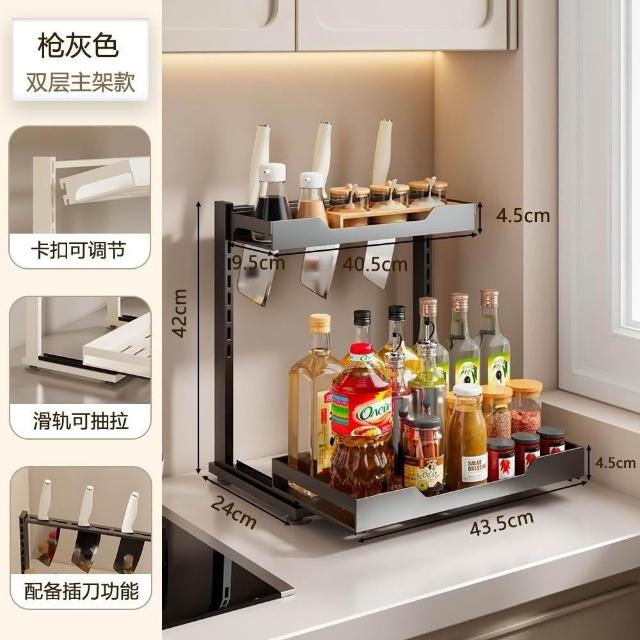 廚房置物架 調料架 調味料架 高度可調 抽拉 置物架 刀具架 調料收納架 廚房調料架 調味料罐組 調