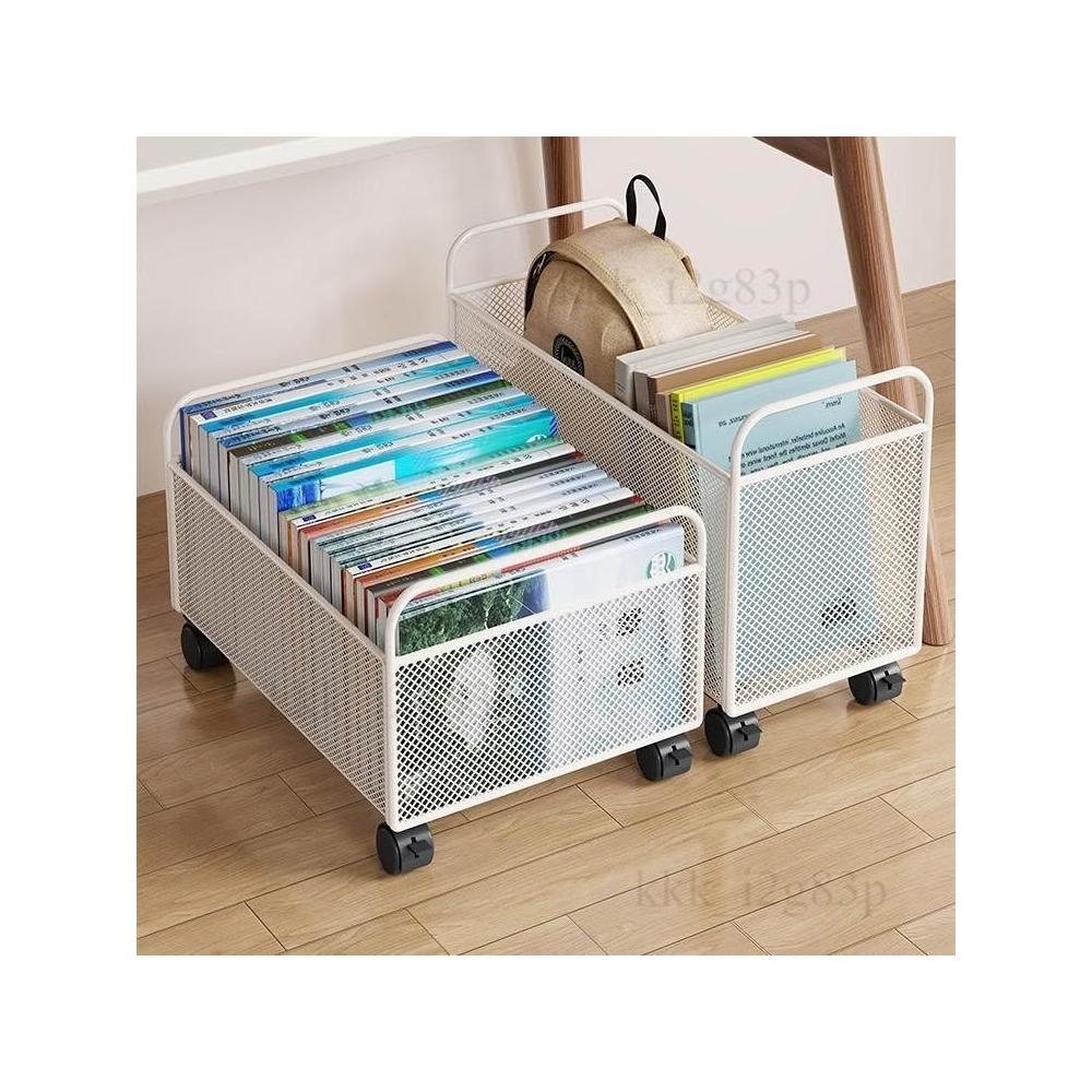 桌下 學生放書包收納盒 滑輪帶輪 書本箱 可移動置物架筐 推車 書桌神器 收納小推車 滾輪收納籃 桌