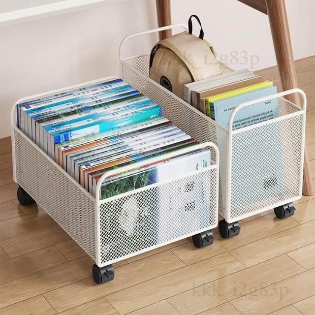 桌下 學生放書包收納盒 滑輪帶輪 書本箱 可移動置物架筐 推車 書桌神器 收納小推車 滾輪收納籃 桌