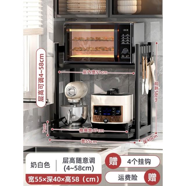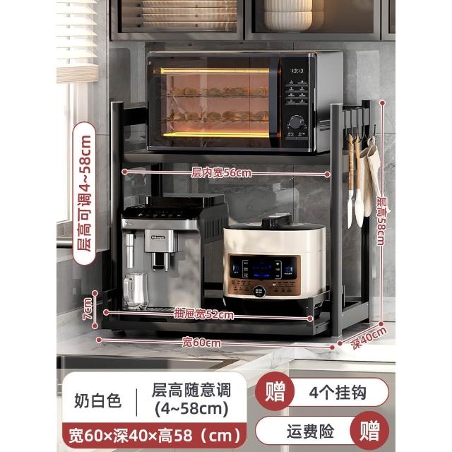 廚房置物櫃 抽拉式置物架 微波爐烤箱收納架 電飯煲收納櫃 多功能雙層台面收納架 鍋具收納架 儲物櫃