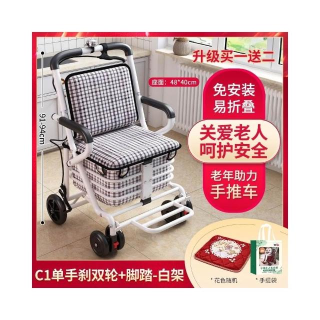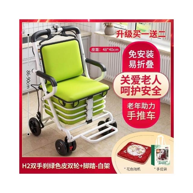 四輪小推車 摺疊助力椅 助步座椅推車 可坐可推式 軟椅代步車 助行代步車 戶外手推車 老人手推車 老