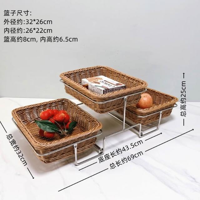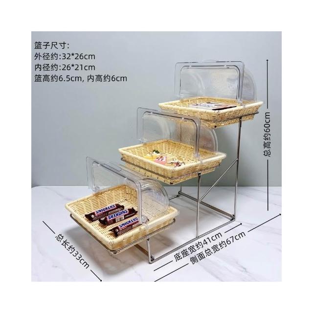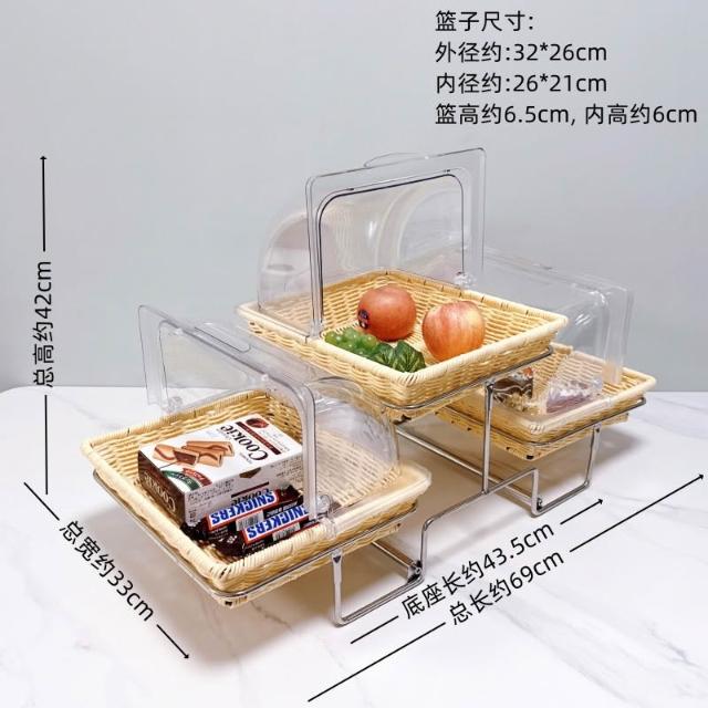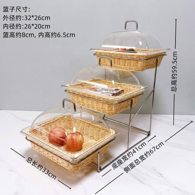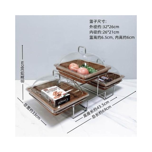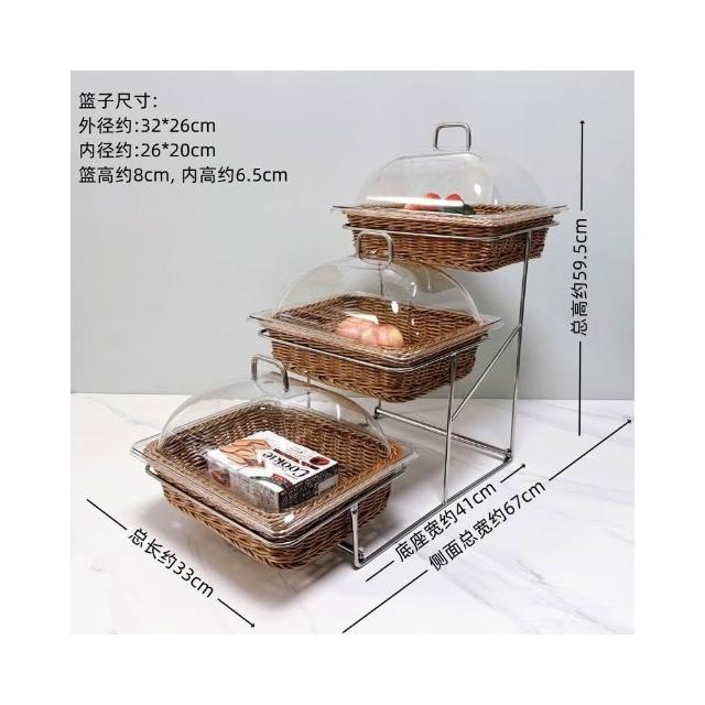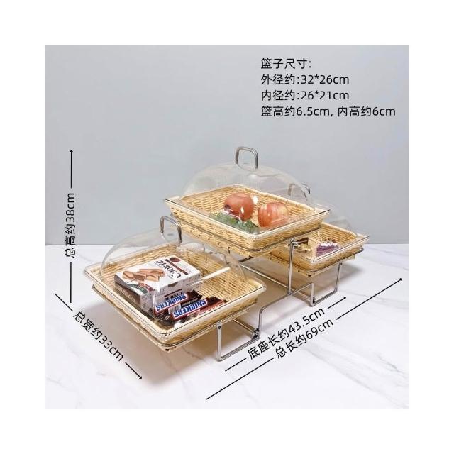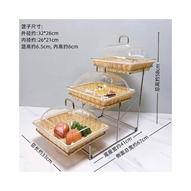 酒店時尚創意三層面包點心水果籃 帶蓋自助餐水果盤 多層食物展示架 水果籃 小籃子 麵包籃 點心籃 置