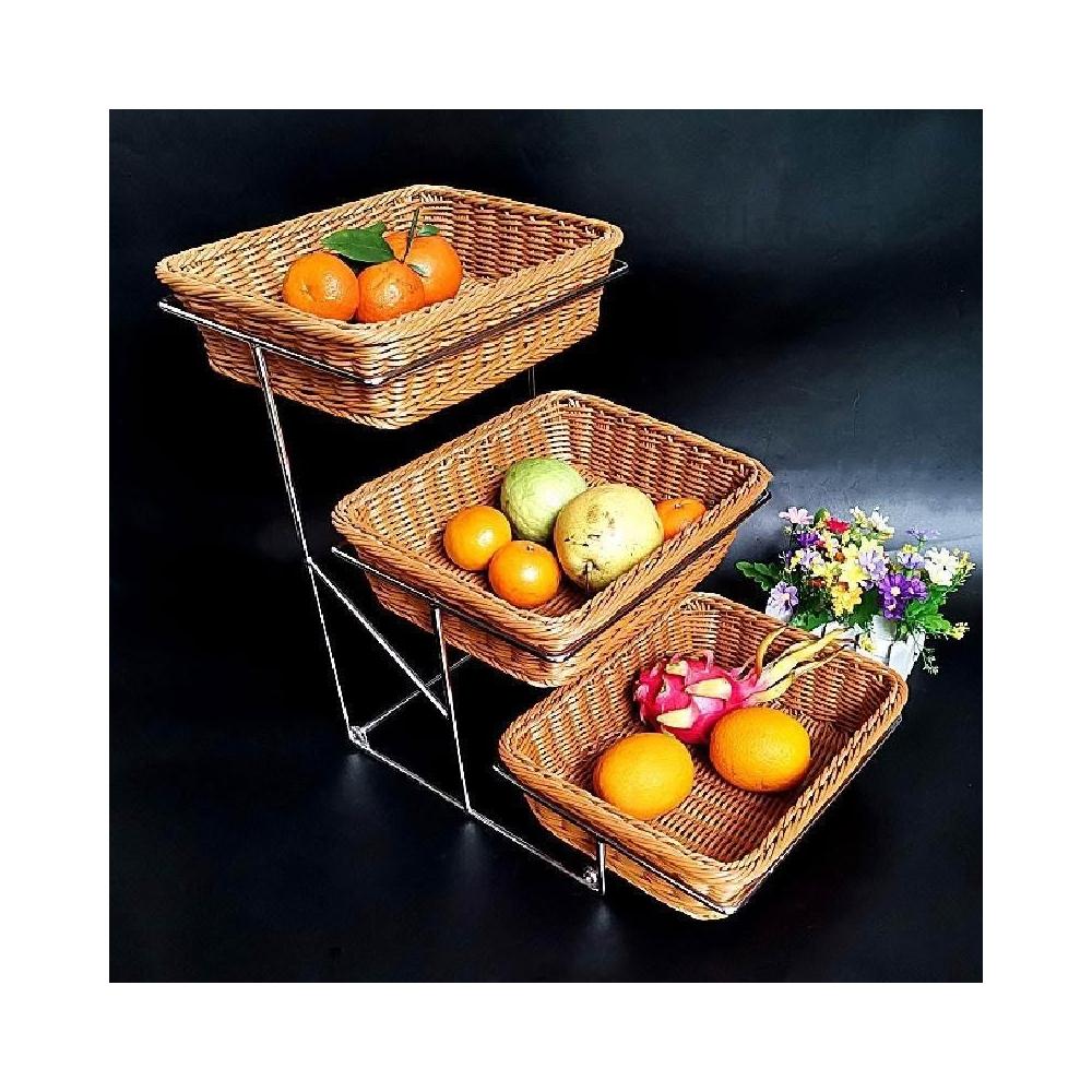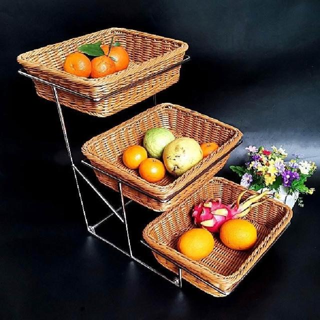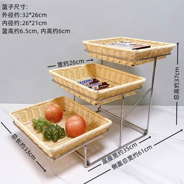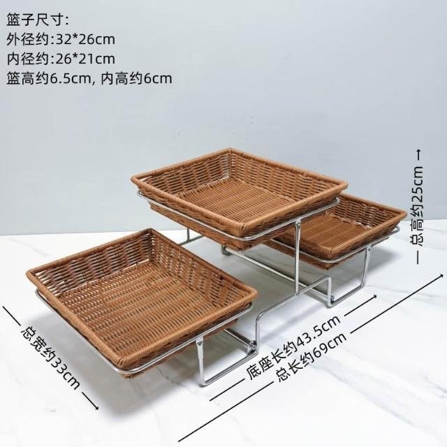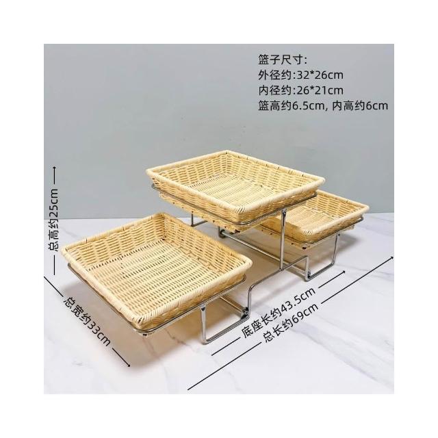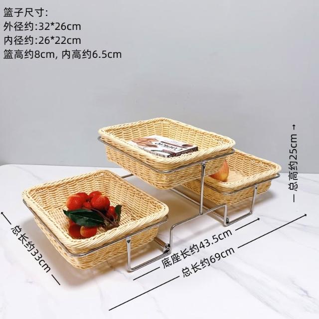 酒店時尚創意三層面包點心水果籃 帶蓋自助餐水果盤 多層食物展示架 水果籃 小籃子 麵包籃 點心籃 置
