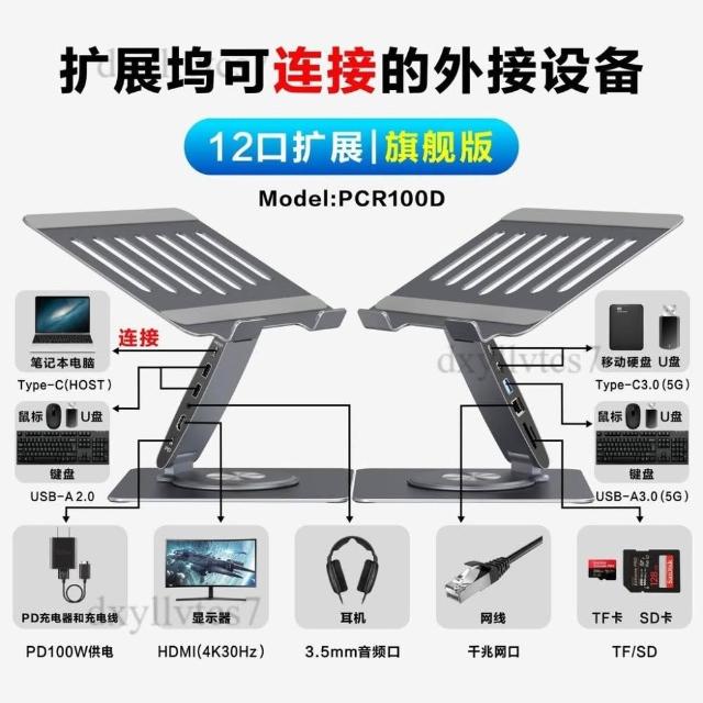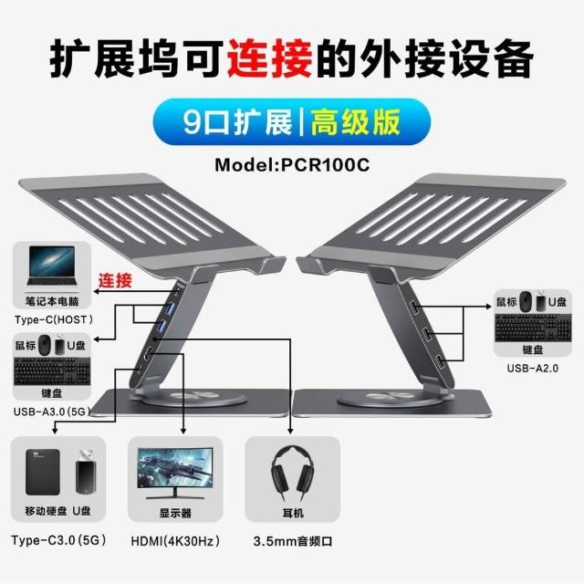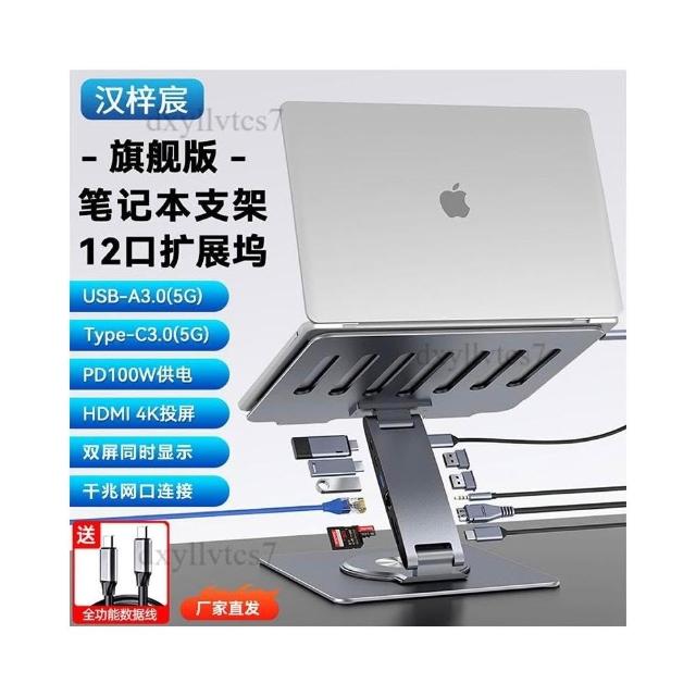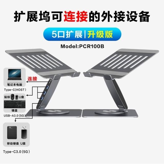 筆記本支架帶擴旋轉升降全鋁合金托架辦公室抬高墊鍵盤加高置物底座高托架收納架子升降式托架支架