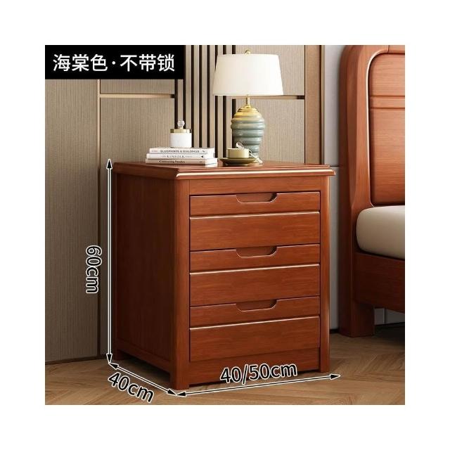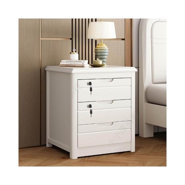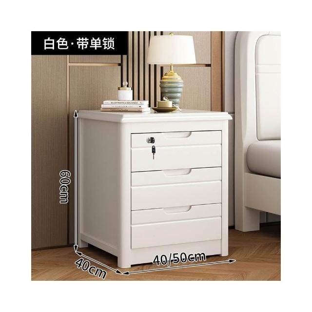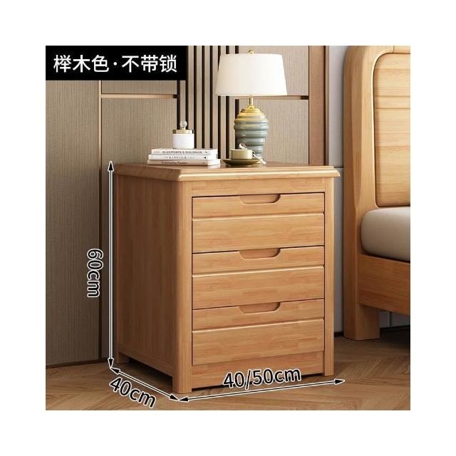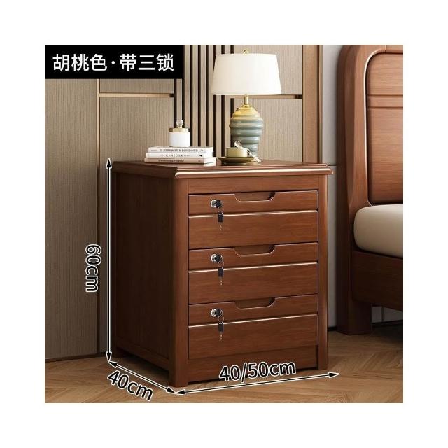 實木床頭櫃 帶鎖簡約現代三層家用臥室斗柜床邊儲物收納櫃免安裝 沙發邊柜 床邊收納櫃 客廳收納櫃 餐邊