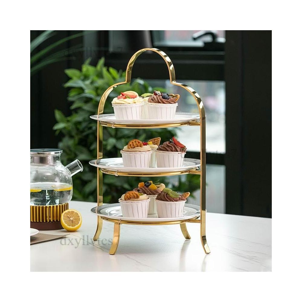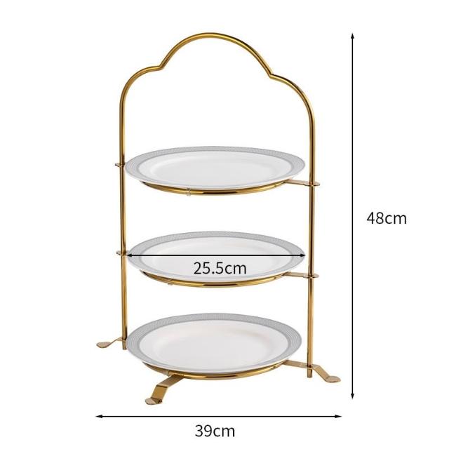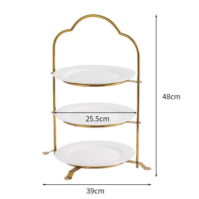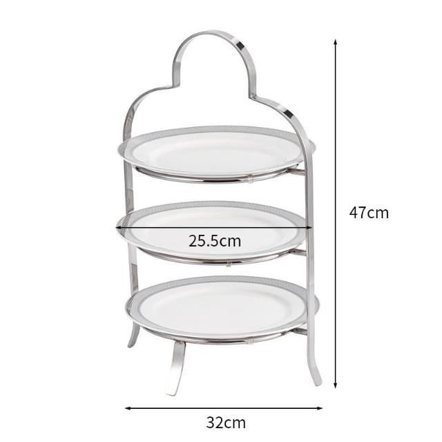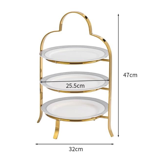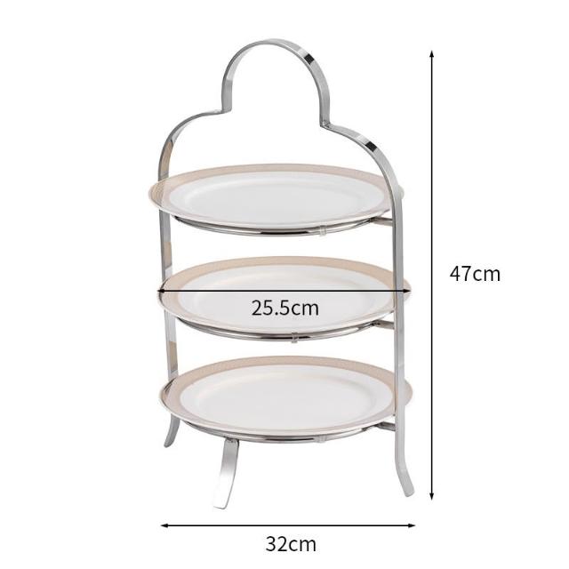 歐式不銹鋼盤子 多層下午茶點心架 酒店三層果盤 蛋糕架 高級甜品台展示架 飾階梯架子 餐桌布置 甜點