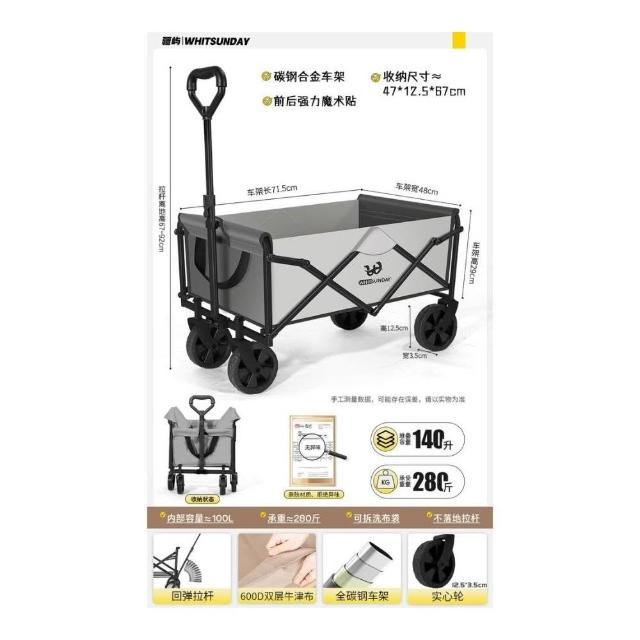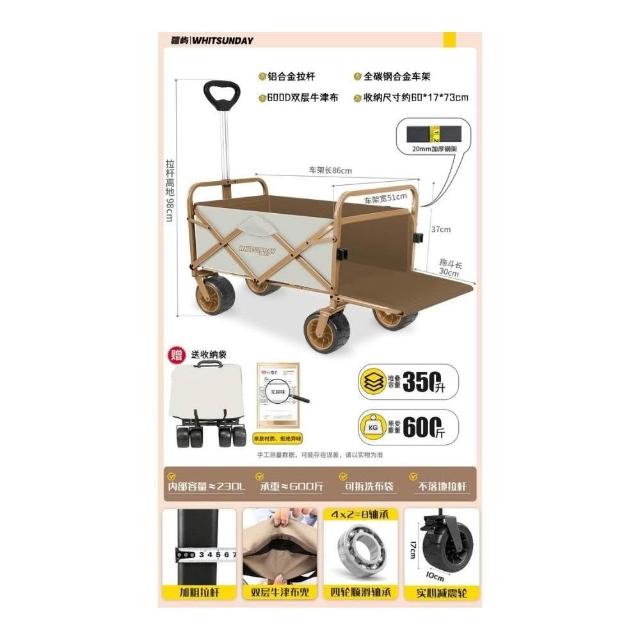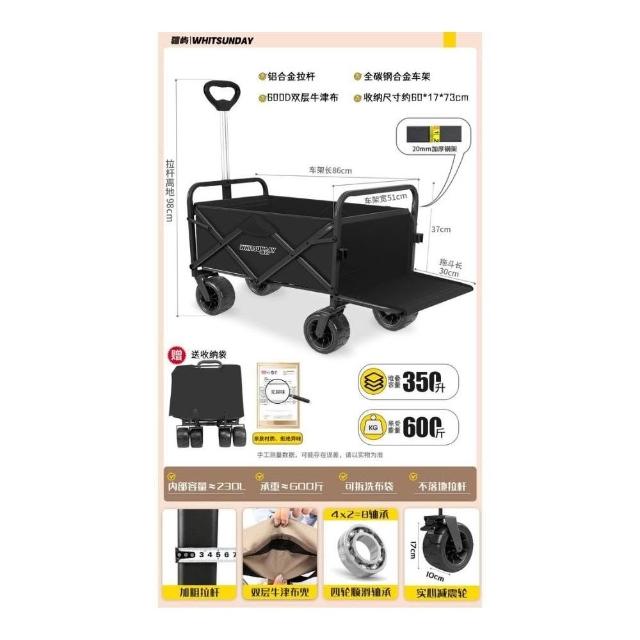 戶外可折疊營地車 旅行野營拖車 帳篷擺攤車 手推車 野餐露營車 小推車 折疊野餐車 營地車 戶外推車