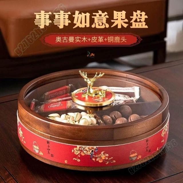 实木干果收纳盒 中式红坚果盒 结婚专用摆盘 轻奢客厅家用點心盤 茶几糖果盘 新年糖果盒 零食盤 果盤
