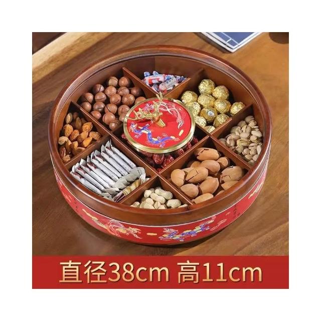 实木干果收纳盒 中式红坚果盒 结婚专用摆盘 轻奢客厅家用點心盤 茶几糖果盘 新年糖果盒 零食盤 果盤
