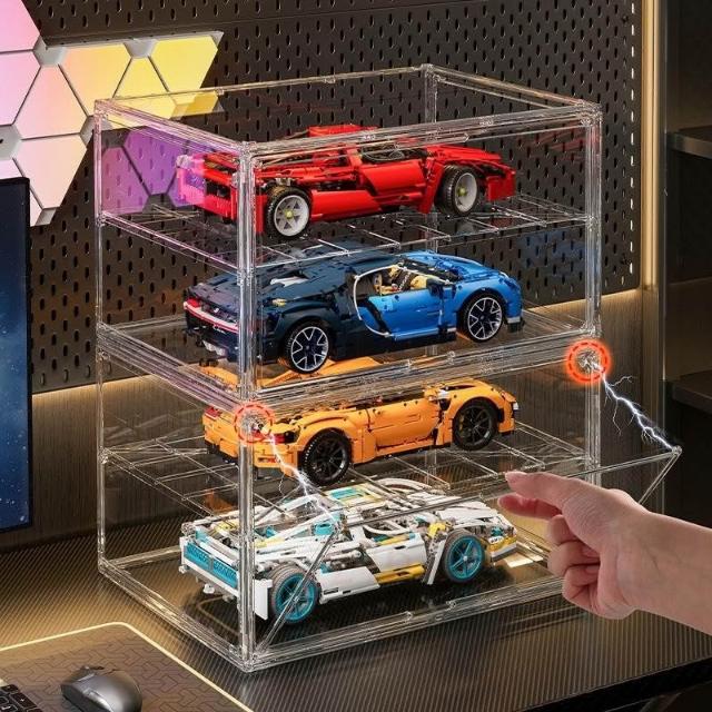 合金玩具小汽车收纳盒 乐高车模型多层透明收纳展示架柜 手办置物架 透明盒 小汽車展示盒 模型車展示盒