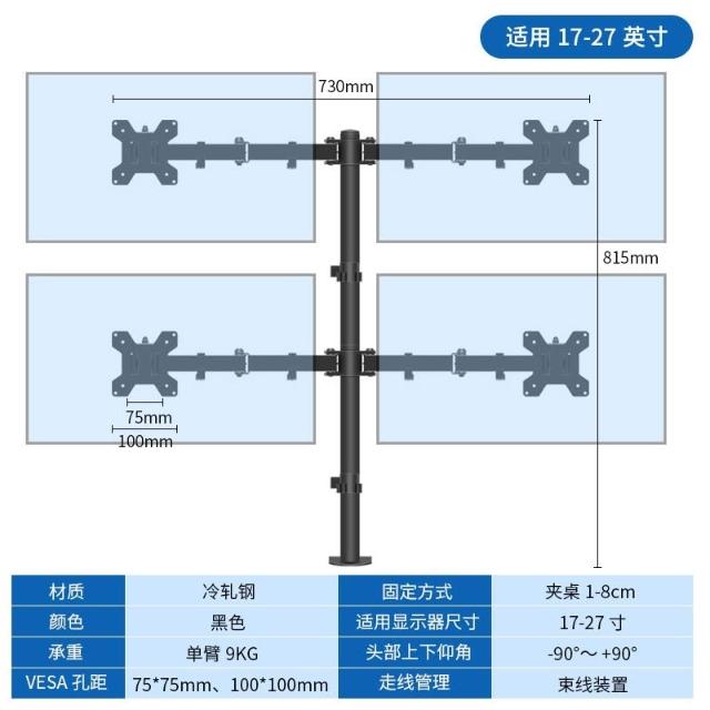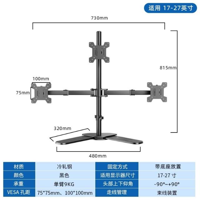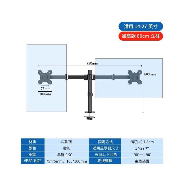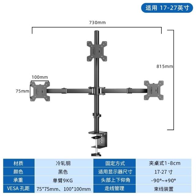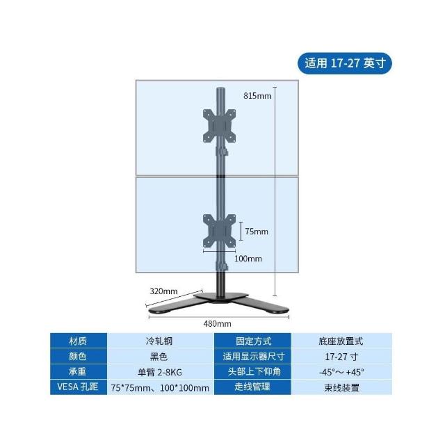雙屏顯示器支架 左右上下電腦多屏幕筆記本增高架 免打孔一拖二底座 手臂支架 螢幕支架 顯示器支架 鎖