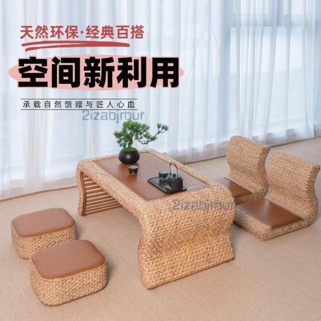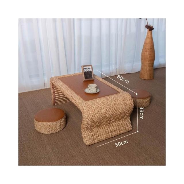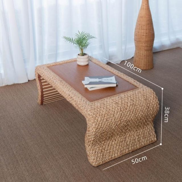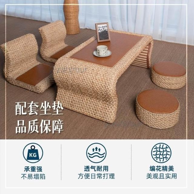 家用阳台地桌 藤编榻榻米茶桌 飘窗桌 炕桌 炕几 小茶几 三件套日式桌子 茶几 小桌子 小茶几 床上