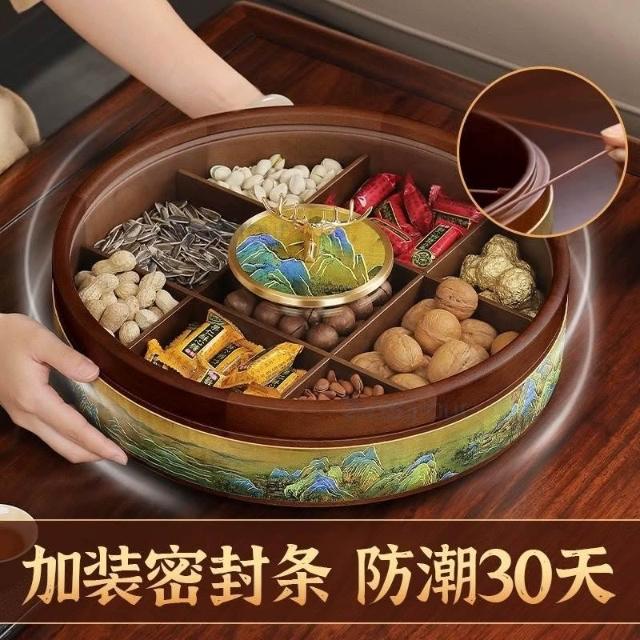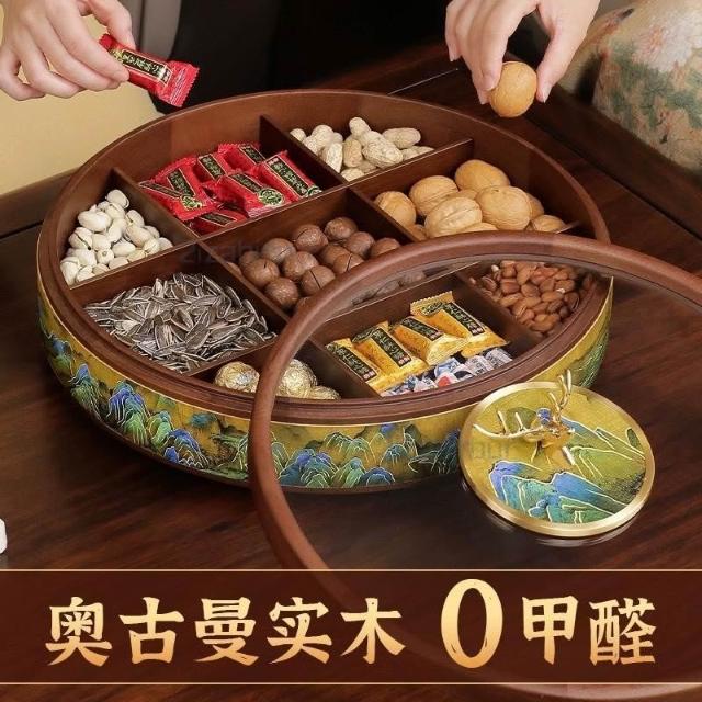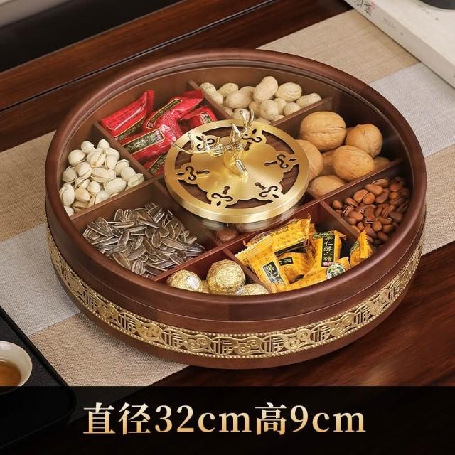 九宫格实木干果盒 客厅茶几家用精致水果盘 轻奢高端坚果零食摆放盘 堅果盤 幹果盤 零食分格盤 託盤