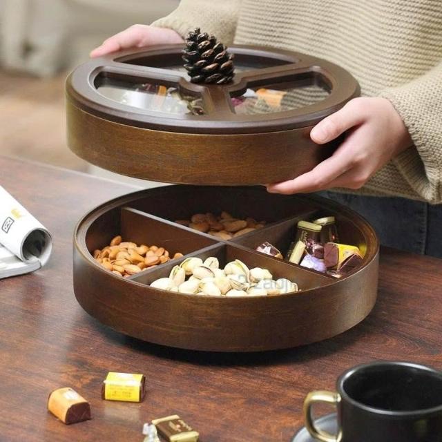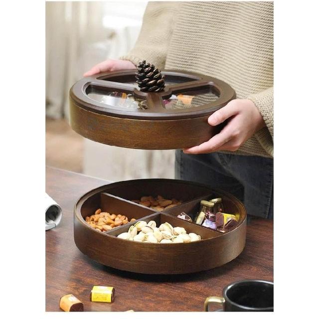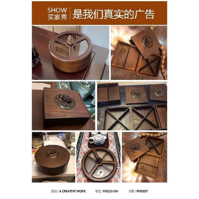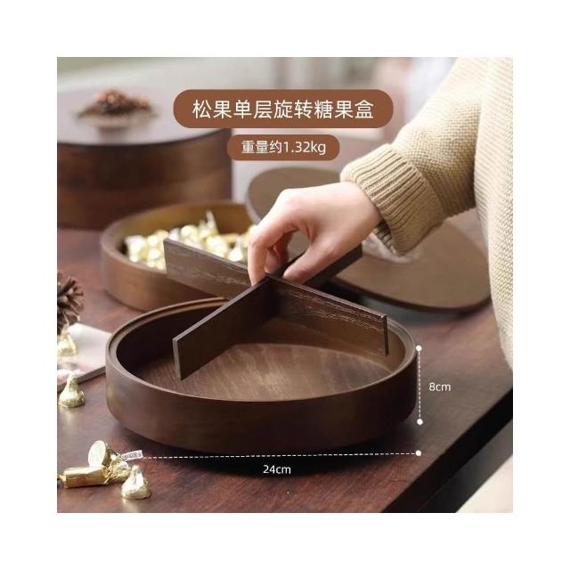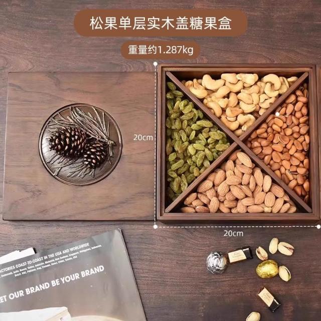 糖果盒 中式木质客厅干果盒 零食盘 贺年全盒 家用过年收纳盒 零食盤 帶蓋木質託盤 點心盤 小酒館果