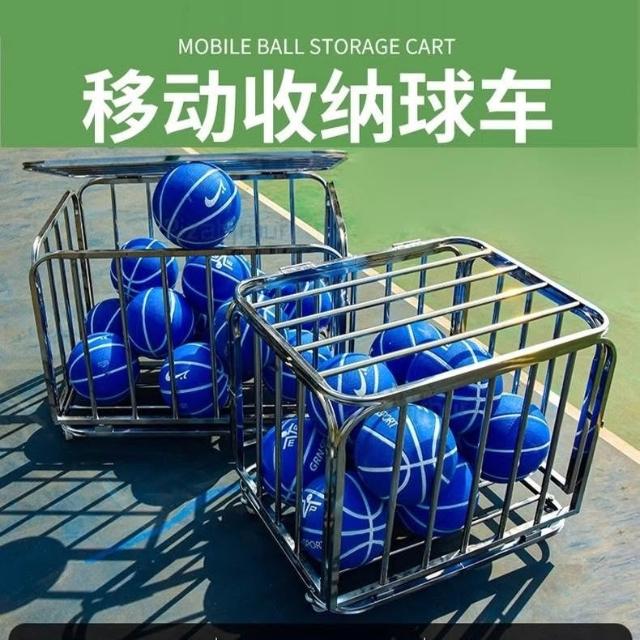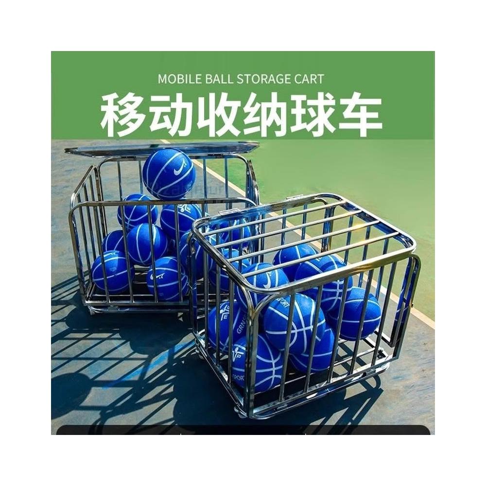 不鏽鋼球車 園籃球收納筐 足球框 球類收納筐 移動折疊室外推車置物架 體育館球類收納筐 移動收納球車