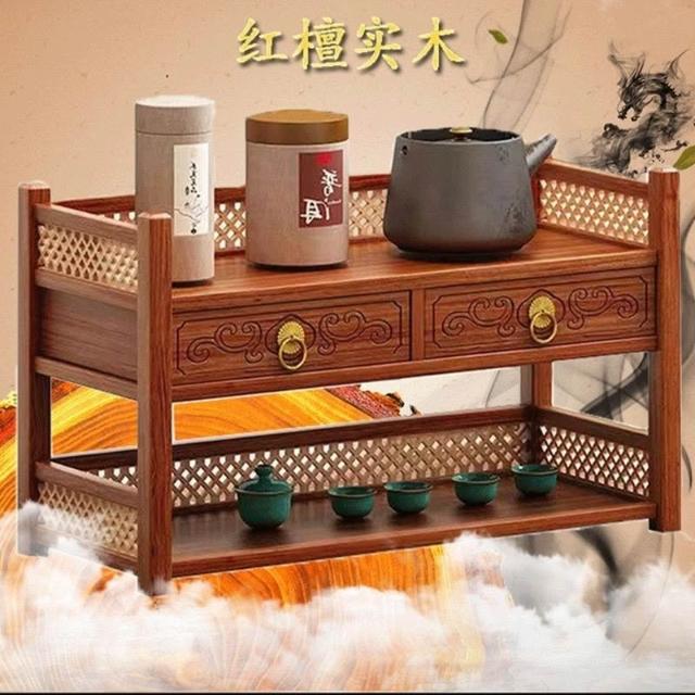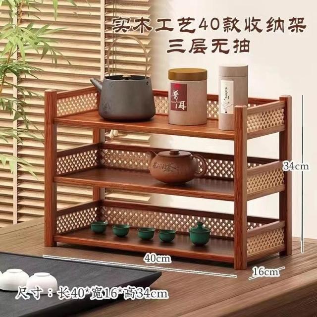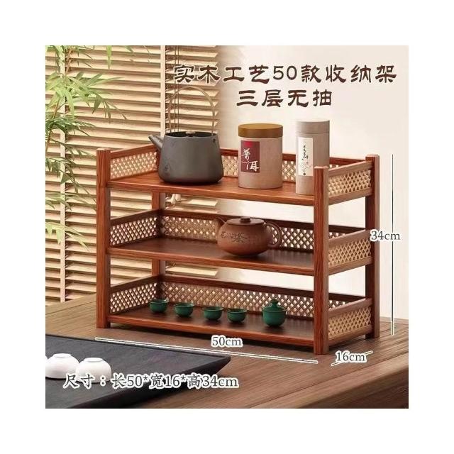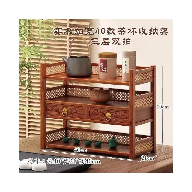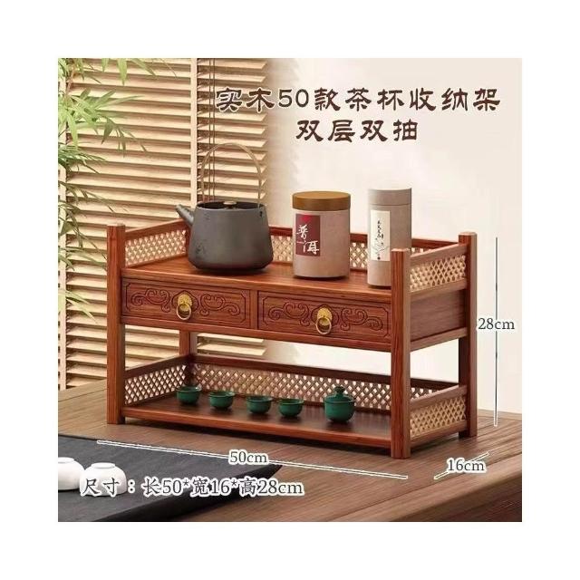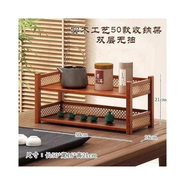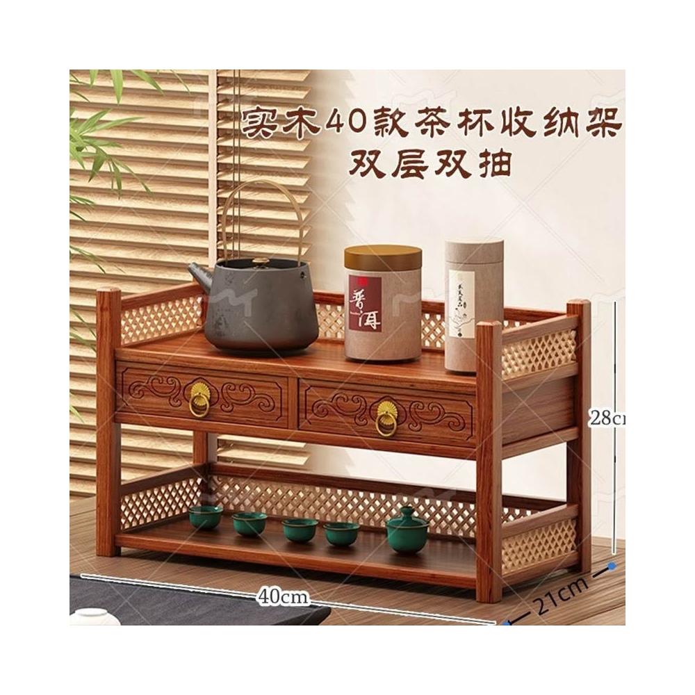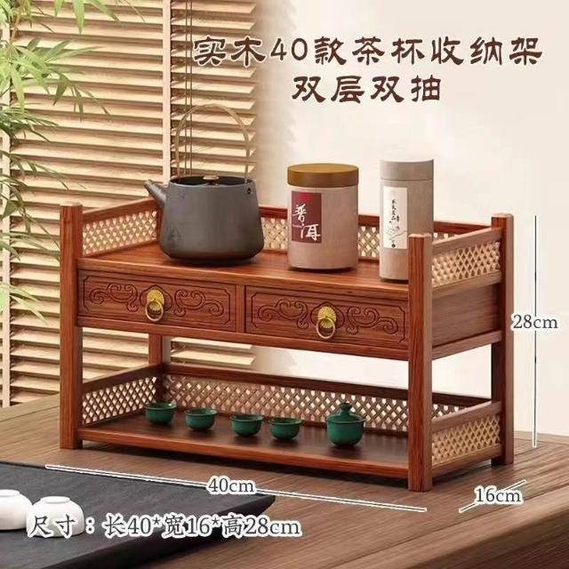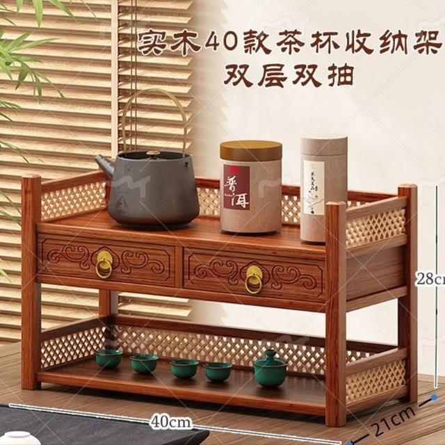 茶具小型多层古风桌上置物架 雙層置物架 馬克杯架 杯櫃 储物实木桌面茶水杯收纳架 置物高档摆放桌